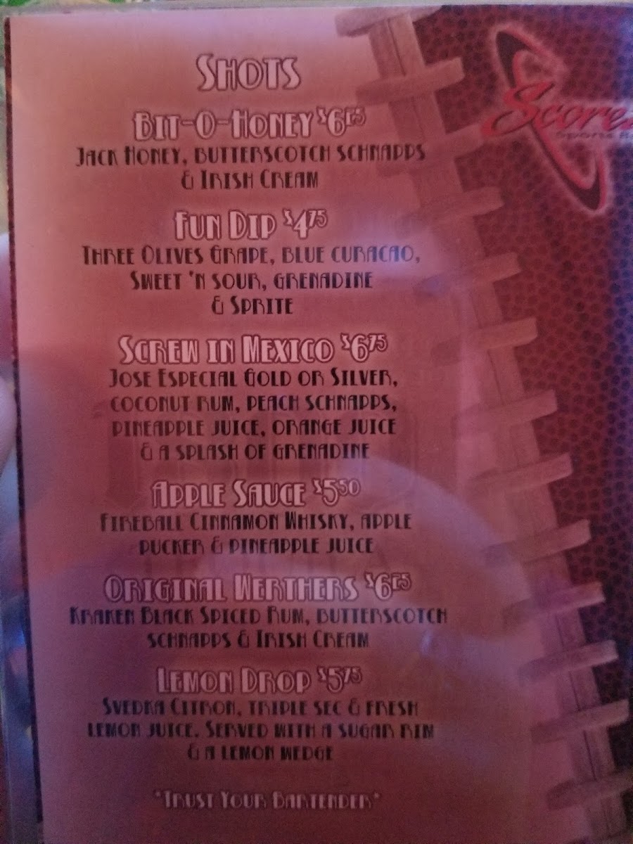 Scorez Sports Bar Menu